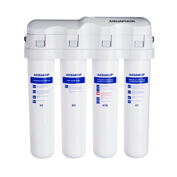 Обратноосмотические фильтры используются для абсолютной защиты от накипи, т.к. полностью устраняют соли жесткости из воды.нетЧисло ступеней очисткиКартриджи последовательно очищают воду и от видимых примесей, и от растворенных. Первый картридж задерживает более крупные частицы, а каждый последующий - более мелкие. Чем больше ступеней - тем лучше фильтр очистит воду: поймает более мелкие видимые частицы ржавчины, песка и ила, успеет захватить из воды максимум растворенных примесей - хлора, нитратов, тяжелых металлов и других.4МинерализацияПроисходит после финишной очистки воды. Необходима прежде всего в фильтре обратного осмоса, поскольку такой фильтр полностью устраняет из воды все примеси, в том числе минералы. Минералы добавляются в оптимальной концентрации - для пользы и привычного вкуса воды.нетПостфильтрацияФинальный этап очистки воды: картриджи постфильтрации удаляют самые мелкие механические частицы и кондиционируют воду, придавая ей более приятный вкус.нетНакопительная емкостьОбычно нужна в фильтрах обратного осмоса. Глубокая фильтрация требует времени. Чтобы Вам не приходилось ждать, пока вода наберется в чайник или кастрюлю, почти во всех моделях используется накопительный бак для чистой воды или другая емкость. В стандартном фильтре обратного осмоса под мойку воды в баке достаточно для семьи из 5-6 человек.нетФильтрующий модуль в комплектедаОтдельный краннетДавление в водопроводе не более, атмМаксимальное давление воды на входе в систему, при котором возможна стабильная работа фильтра.6,5Ширина, смОбратите внимание на габариты фильтра, и измерьте, сколько свободного пространства в предполагаемом месте установки.26,0Глубина, смОбратите внимание на габариты фильтра, и измерьте, сколько свободного пространства в предполагаемом месте установки.9,0Защита корпуса от гидроударовдаИсходная водаЖесткая вода – вода с избытком минеральных солей. От нее появляется накипь в чайнике, известковый налет на сантехнике и разводы на посуде. Мягкая вода – та, в которой мало минеральных солей. Нет накипи в чайнике и разводов на посуде. Фильтры для мутной воды и фильтры от ржавчины, как правило, имеют несколько стадий очистки и дополнительный полипропиленовый картридж. Он задерживает механические частицы ила, песка и ржавчины и защищает картриджи более глубокой очистки.жёсткаяУстраняет мутностьМутность водопроводной воды может говорить о том, что в ней много мелких механических частиц. Важно, чтобы в фильтре был установлен дополнительные картридж механической предфильтрации (полипропиленовый) - он продлит жизнь остальным картриджам более тонкой очистки.даУстраняет ржавчину, бурый осадокЛюбой фильтр под мойку удалит из воды крупные и мелкие частицы ржавчины. Некоторые фильтры имеют повышенный ресурс по железу: они дольше служат в такой воде, поскольку лучше подходят для удаления из воды железа и механических частиц ржавчины.нетЗащита от бактерийВсе проточные фильтры в той или иной степени защищают от бактерий. Например, добавление серебра препятствует их размножению. Это стандартная степень защиты. Если в семье есть дети, пожилые люди или аллергики, воду рекомендуется обеззараживать, то есть полностью удалять микроорганизмы. Повышенную защиту от бактерий дают фильтры с половолоконной мембраной. Это пучок тр