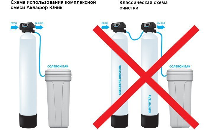 Использование комплексной смеси Аквафор Юник позволяет снизить эксплуатационные затраты более чем в 2 раза. Смеси Юник могут импользоваться в системах как с ручным, так и с автоматическим клапаном управления.