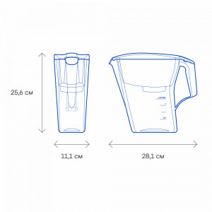 Мобильный и компактный, экономит место на маленькой кухне. Надёжно и необратимо удаляет из питьевой воды хлор, ржавчину, тяжелые металлы, пестициды и другие распространенные примеси. Такой кувшин удобно хранить даже в холодильнике. Все детали выполнены из безопасного пищевого пластика.