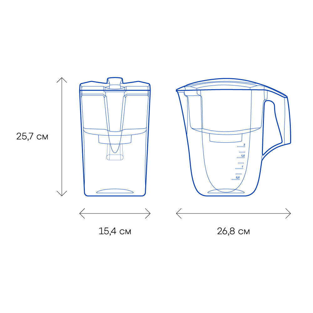 Актуальный дизайн и вместительность. Чистая вода без цвета, запаха и вредных примесей, таких как железо, хлор, оганические соединения, тяжелые металлы и другие распространенные токсины. Кувшин сделан из безопасного пищевого пластика.